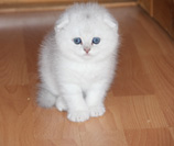 Роскошная сбитая густая белая шубка, словно бы покрытая легкой серебристой дымкой, прекрасно развитое тельце, в котором все пропорционально: и небольшие мускулистые лапки, и подвижный пушистый хвостик, и округлая мордочка с пухлыми щечками и небольшими, плотно прижатыми к голове ушками, - глядя на всю эту красоту, просто нельзя остаться равнодушным! Но кроме внешней привлекательности и оригинального окраса, шотландские кошки-шиншиллы ценятся и за спокойный и покладистый нрав, смышлёность и быструю обучаемость. Возраст этого милого котика – всего полтора месяца, а он уже полностью приучен к лотку, так что в вашем доме не будет никаких проблем с чистотой и гигиеной. Даже если в вашей семье есть еще домашние питомцы, этот забавный пушистик замечательно с ними уживется, никогда не будет проявлять агрессивность и пытаться доминировать. Благодаря этим чертам характера шотландские кошки еще и прекрасные друзья для детей: они готовы хоть весь день проводить за играми с детьми, но никогда не поранят и не обидят их. Родители этого шиншиллового шотландца – титулованные особы. Мать Shimanylia и отец Begemot – призеры многих российских и международных выставок, обладатели безупречной родословной и отличной генетики. Кроме этого, они отличные производители. Благодаря специально разработанному рациону питания и лучшим условиям существования все котята из их потомства растут крепкими и здоровыми, становясь поистине роскошными представителями породы. Мы будем очень рады, если этот маленький представитель породы шотландской вислоухой серебристой шиншиллы привлечет ваше внимание и вы захотите принять его в вашу семью. Окружив его любовью и заботой, вы получите в ответ всю без остатка его кошачью ласку, нежность и преданность!Видео с котенком